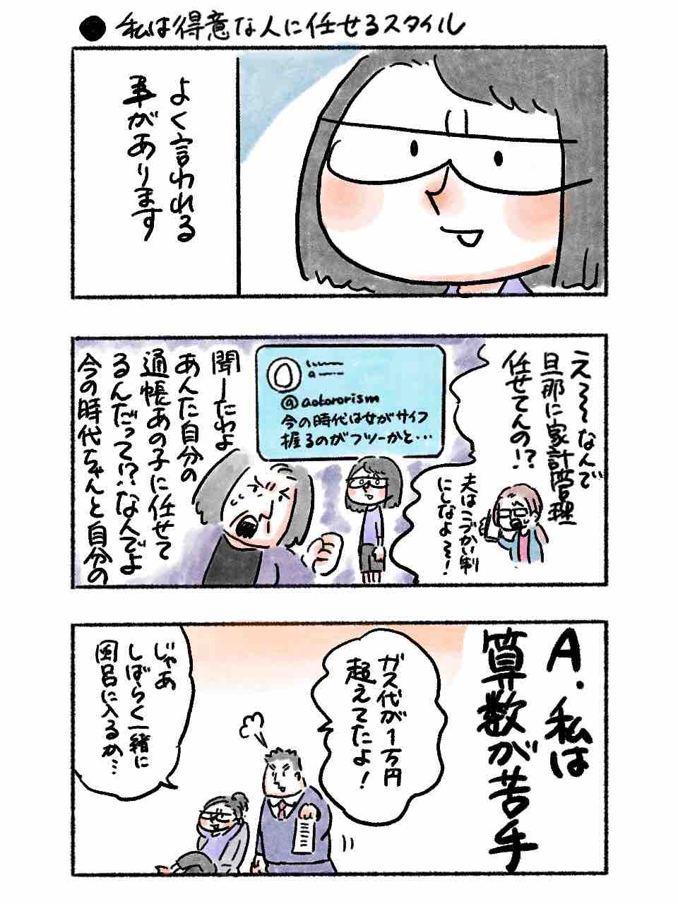 でも、アオコさんのエッセイの「互いの得手不得手」のお話を読んでそれはそれは目からウロコで、「我が家はこれでいいんだ!」と思えました(*´`)