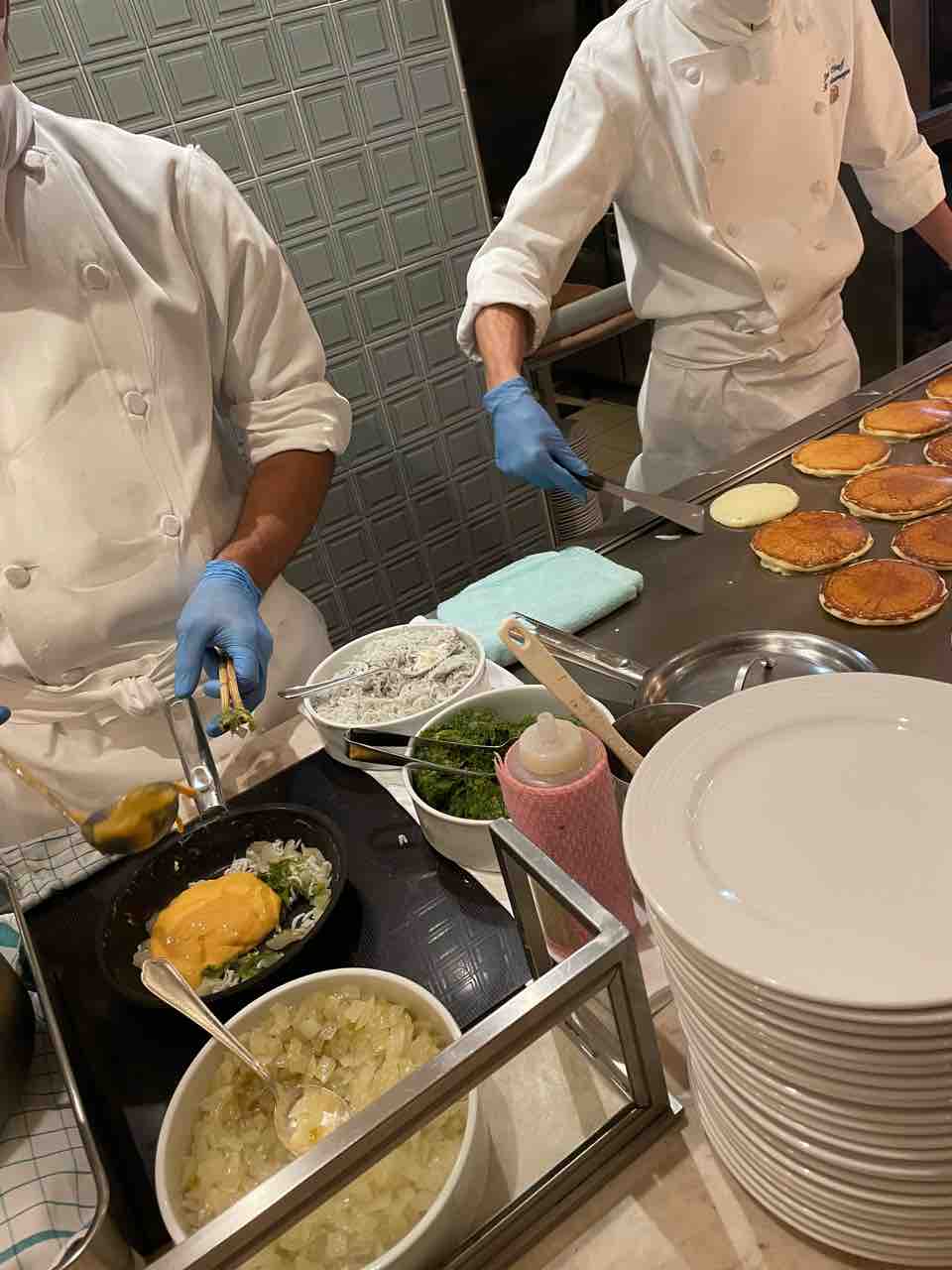 シェフのパンケーキとアーサ(アオサ)入りのオムレツなんかをいただきました。パンケーキはおかわりしてしまった💞