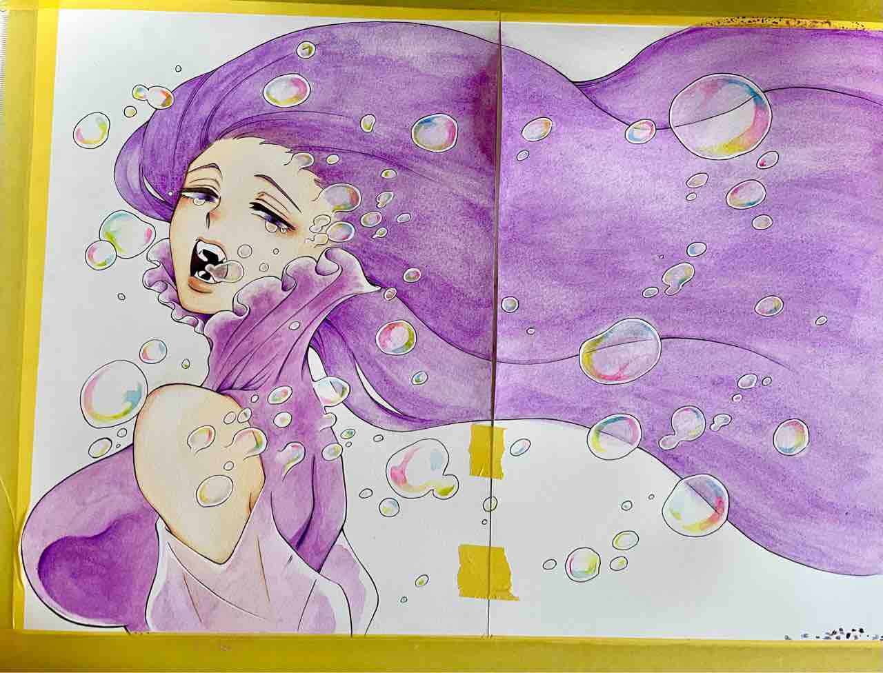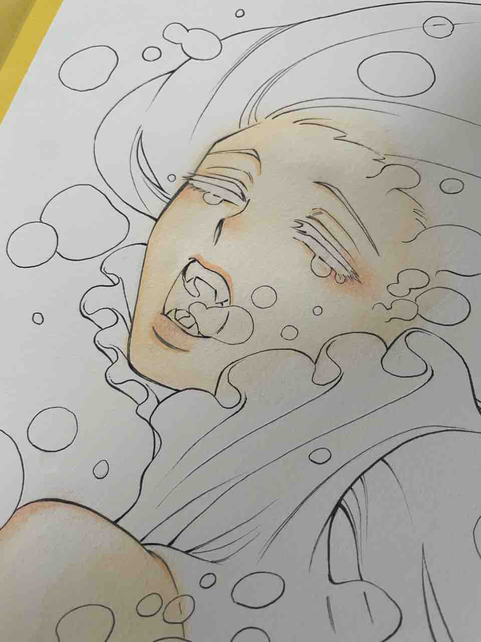 水彩絵の具着色の流れ。現在アクリルガッシュも練習中!